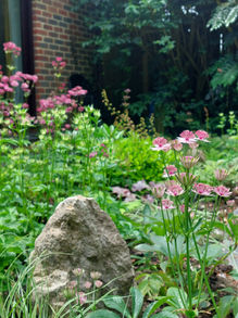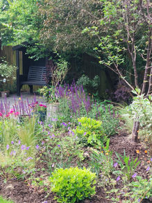 Where the woodland meets the exotic. Borrowing from the natural landscape beyond the garden this design brings the simplicity and beauty of greenery towards the house with exotic splashed of colour and vivid textures.