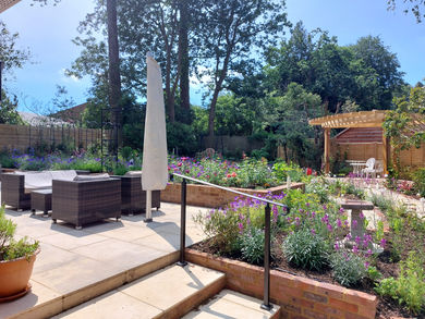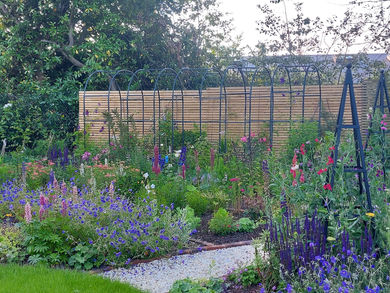 Designed for a client who is as passionate about plants as we are. This garden had a very specific brief to be colourful, full of scent, year round interest and to attract pollinators from all over. The design is comprised of flowing pathways and curved flowers beds juxtaposed with the raised rose beds, brick edged circular lawn and formal vegetable corner.